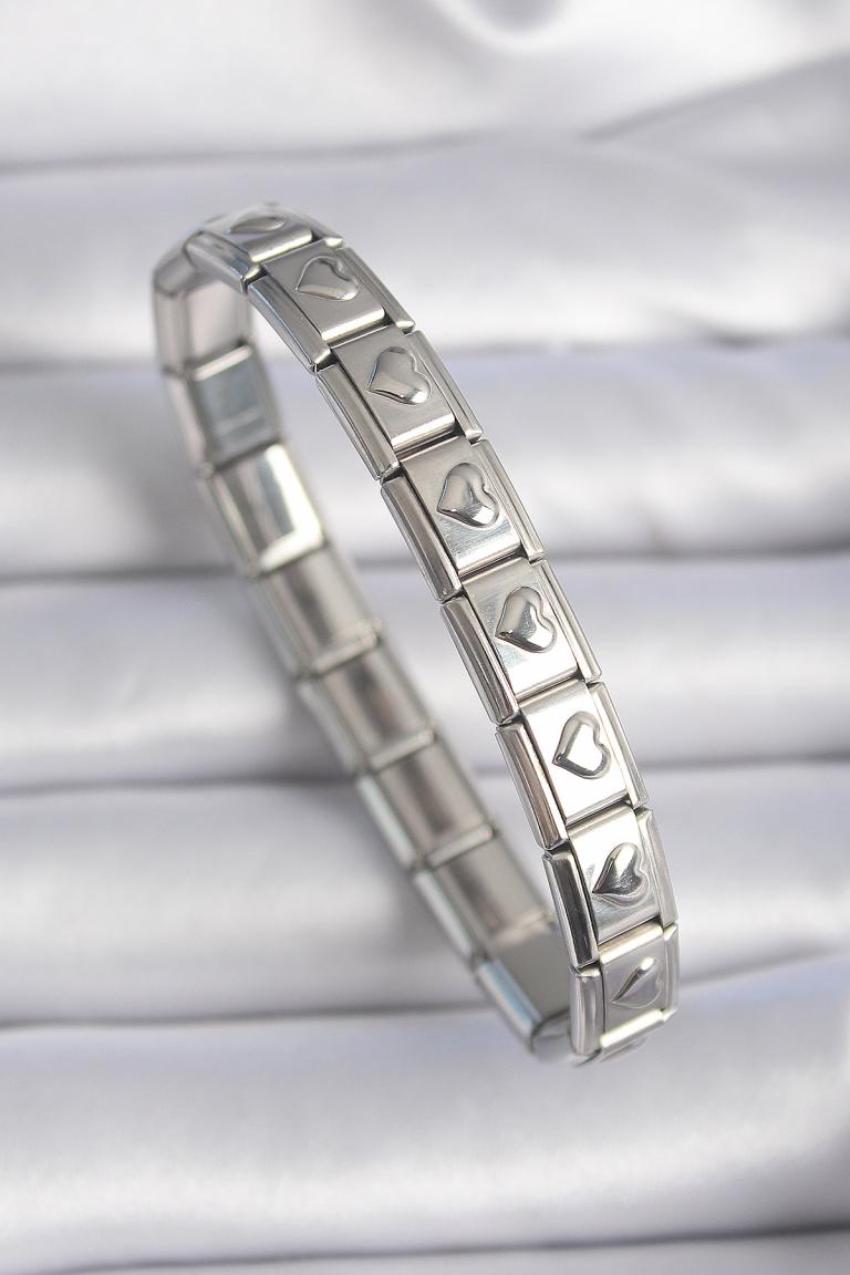 Şıklığın ve zarafetin temsilcisi olan 316L Çelik Gümüş Renk Kalp İşleme Nomination Charm Bileklik, stilinizi tamamlayacak göz alıcı bir aksesuardır. Özellikle özel günlerde veya günlük kullanımlarda rahatlıkla tercih edebileceğiniz bu bileklik, kaliteli malzemesi ve estetik tasarımıyla dikkat çekiyor.