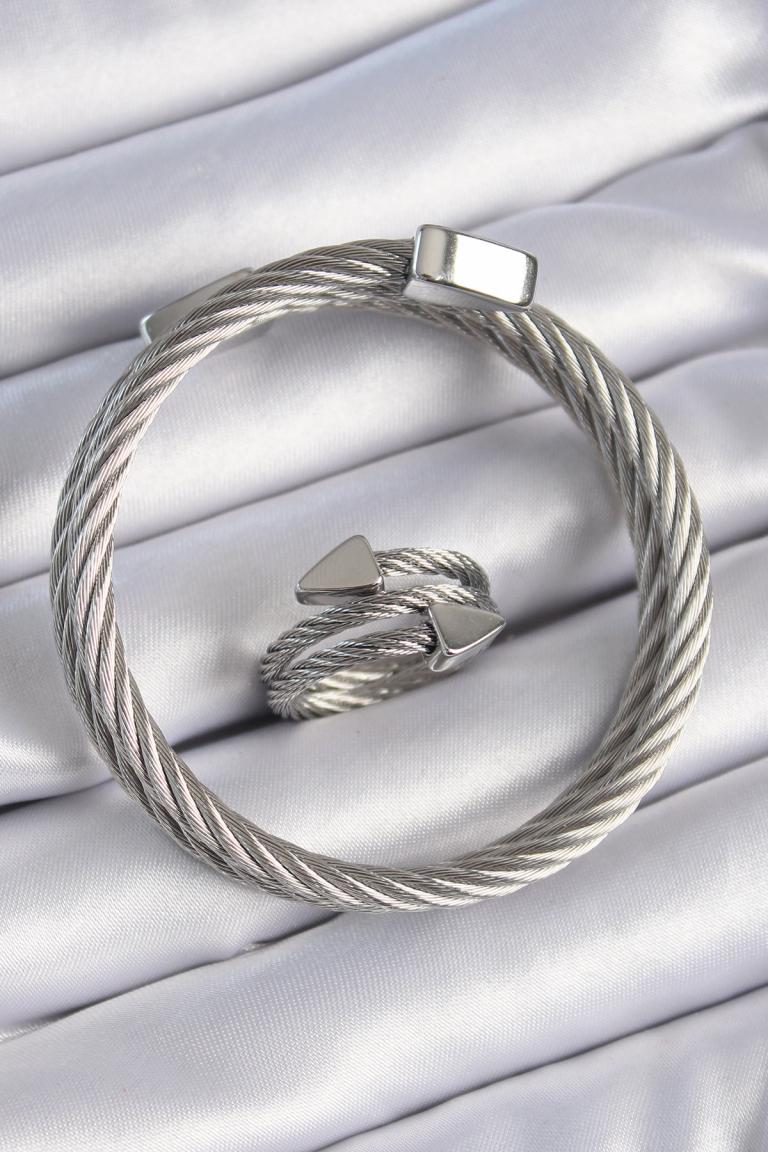 Bu bileklik ve yüzük kombinasyonu, erkeklerin hem gündelik hayatlarında hem de özel davetlerde şıklıklarını artırmak için ideal bir tercihtir. Sarmal tasarımı, tarzınıza dinamik bir hava katarken, gümüş renk ise her türlü kombin ile mükemmel bir uyum sağlar. Moda doğrultusunda tasarlanmış bu set, dikkat çekici detaylarıyla beğenileri toplamaktadır.