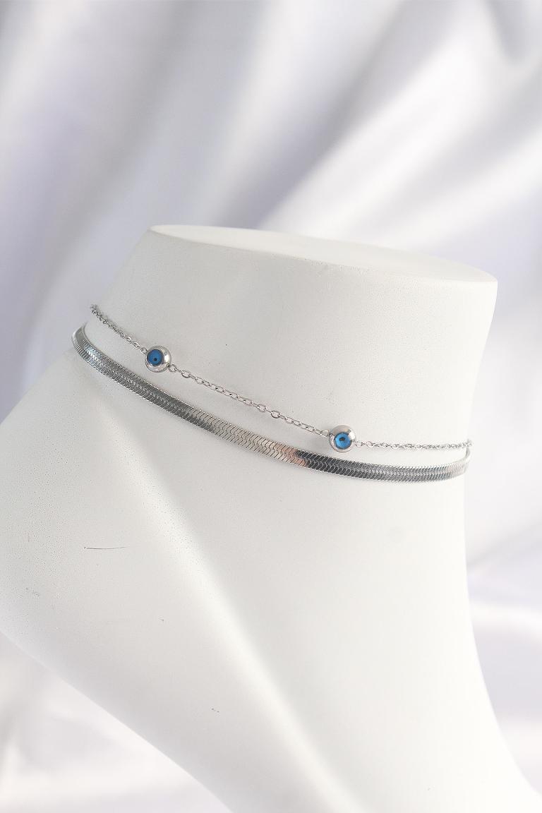 Çelik Gümüş Renk Nazar Boncuk Tasarımlı 2li Halhal, birçok farklı tarzla mükemmel bir uyum sağlar. Şık bir elbise ile kombinleyerek özel davetlerde zarif bir görünüm yaratabilir, günlük spor kıyafetlerinizle birleştirerek de rahat ve şık bir görünüm elde edebilirsiniz. Yaz aylarının vazgeçilmezi olan sandaletler ile eşleştirildiğinde ayaklarınızı ön plana çıkaracak ve tüm dikkatleri üzerinize toplayacaktır.