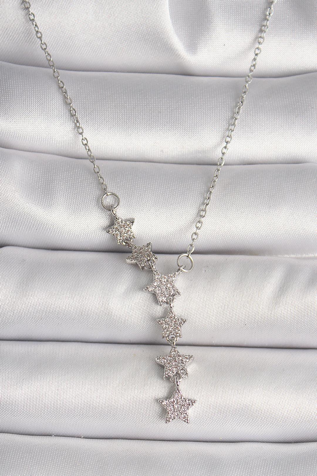 Çelik Gümüş Renk Zincir Zirkon Taşlı Yıldız Model Kadın Kolye, hem günlük hem de özel günlerde kullanım için idealdir. Kot bir tişörtle kombinleyerek günlük şıklığınızı artırabilir ya da özel bir abiye elbisenizle birlikte kullanarak zarafetinizi vurgulayabilirsiniz. Ayrıca, bu kolye sevdiklerinize hediye edebileceğiniz harika bir seçenek sunar.