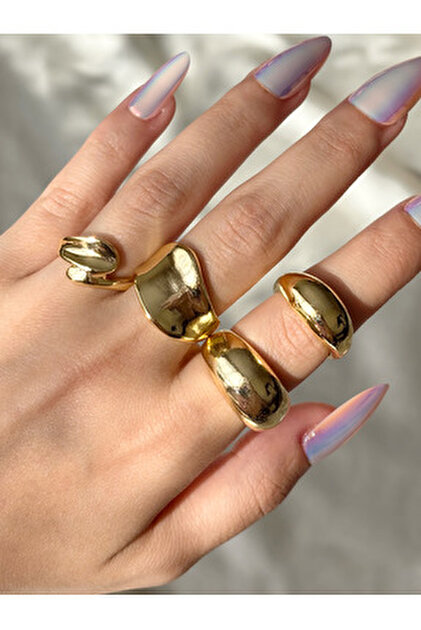 Bu set, her biri farklı bir tasarıma sahip beş adet yüzükten oluşmaktadır. Setin her bir yüzüğü, kaliteli altın renk kaplama ile üretilmiştir, böylece hem dayanıklı hem de dikkat çekici bir görünüm sunar. Yüzüklerin tasarımı, modern ve klasik unsurları bir araya getirerek, farklı zevklere hitap eder.