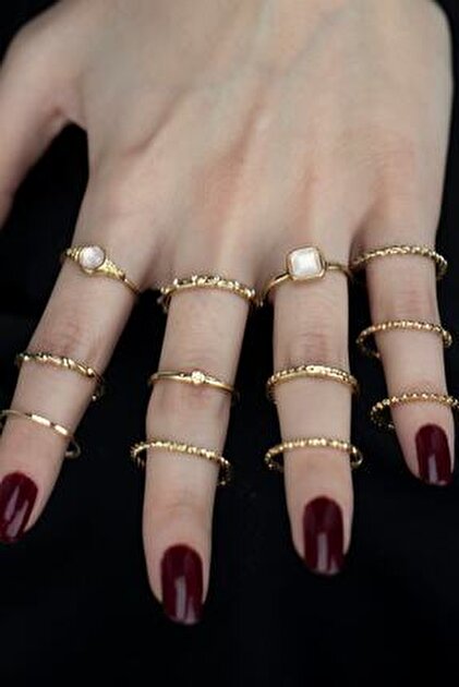 Kadın Gold Renk 5 li Tasarım Yüzük Seti
