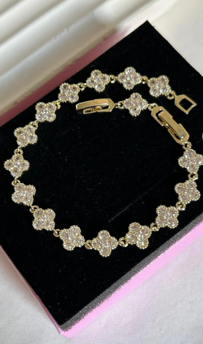 Roya Happiness TAŞLI YONCA ÇİÇEK BİLEKLİK ALTIN GÜMÜŞ RENK ŞIK BİLEKLİK XUPİNG İŞÇİLİK SEVGİLİYE HEDİYE KUTULU